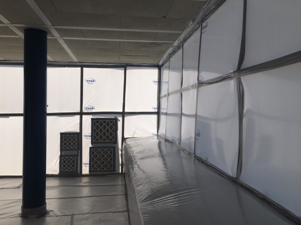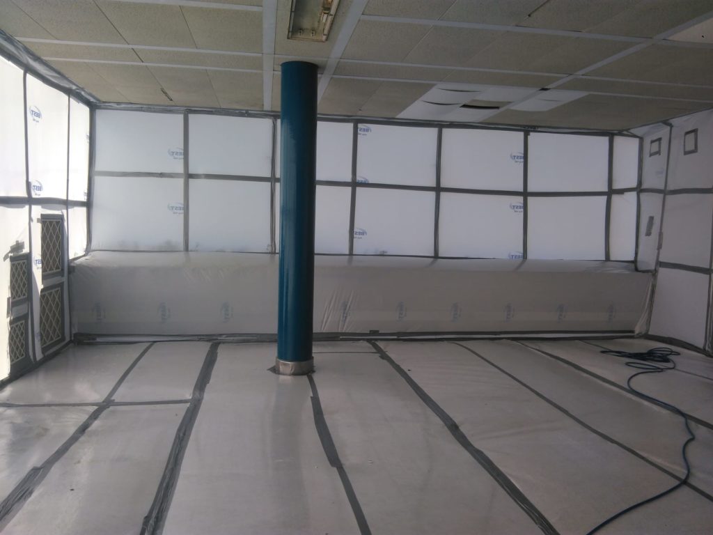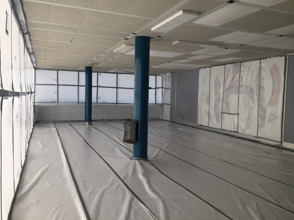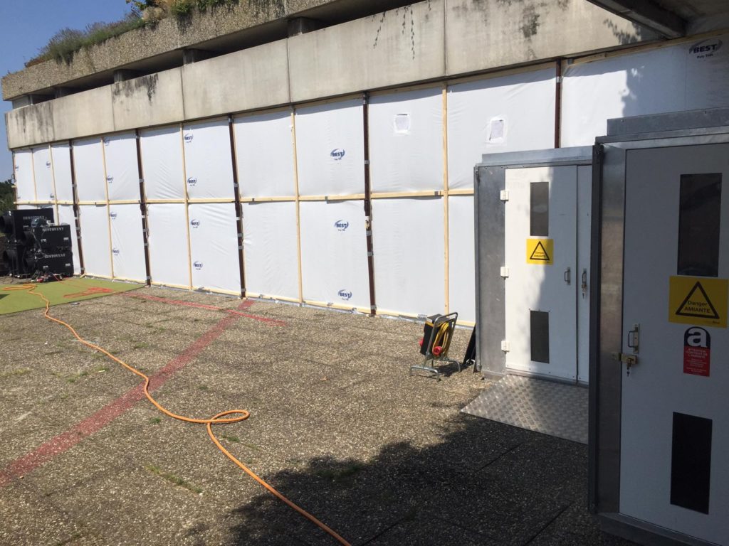 Assainissement des faux-plafonds du préau (150 m2)